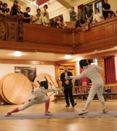We currently have four teams representing the club: the Men’s 1st Team competes in the BUCS Premier League North, and our Men’s 2nd and Women’s 1st and 2nd Teams all compete in the Scottish Student Fencing Centralized League. Alongside regular competitions, we offer weekly beginner sessions on Wednesdays, sparring on Fridays, and full training on Saturdays. Our members also come together for social events like our weekly “Bank Street Fridays.”