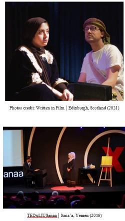 Forced into exile due to their artistic activism in Yemen, they arrived in Scotland in late 2020 as recipients of the prestigious IIE-Artist Protection Fund awards and have since become active voices within the Scottish arts landscape. Their practice spans solo and joint projects, often centring community storytelling, cultural rights, and the role of art in healing and integration.