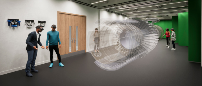 The lab spans 12m x 12m and consists of 15 learner stations. Each station consists of a high-end PC, a touch screen monitor, mixed reality headset, a tactile mat, and a UV-C sanitisation box. Click here to find out more about the hardware available.