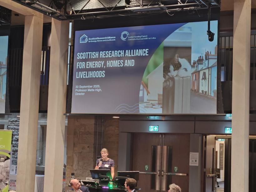 Speaking on the third showcase panel, Professor Mette High, SRAEHL Director, shared the Alliance’s vision to co-create solutions for how we heat our homes, reduce energy demand, and support livelihoods in a changing climate. Bringing academics and local authorities together with voices from industry, charities, and communities, ensuring that research is grounded in lived experience and local realities.