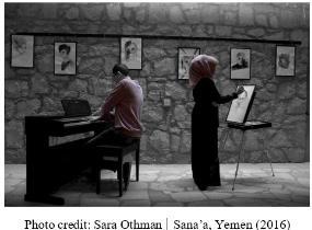 Shatha Altowai, a painter working primarily in oil, and Saber Bamatraf, a pianist and composer, are a self-taught Yemeni artist couple based in Edinburgh, Scotland. They both hold a Bachelor’s degree in Information Technology with Honours, from Sana’a, Yemen, where they first met. They began their public artistic practice shortly after their marriage in August 2014— just as the civil war in Yemen was breaking out. Their collaborative work explores the intersection of art, conflict, displacement, and resilience — creating music and visual narratives that document lived experiences and reimagine futures.